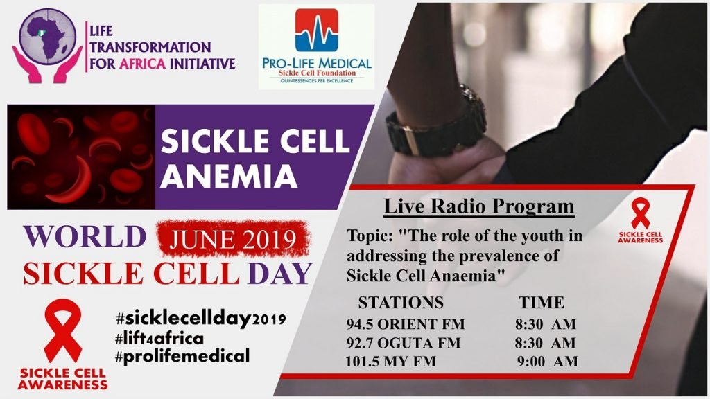 World Sickle Cell week kicked off on Wednesday, with a radio program which was streamed Live started by 9:05 am, listeners were also allowed to call in on a live radio program on IBC/Orient FM where the Executive Director Life Transformation for Africa Initiative Mr Ezeani Chiemezie, the CEO Pro-Life Sickle Cell Foundation Mr Uche Udensi, Miss. Adaobi Adaobi and Mrs Kayode from Pro-Life Sickle Cell Foundation had the privilege to be on their Live program “Matters Arising”.